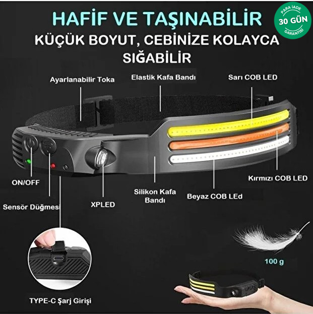 Hayır, "Zero-Bounce" (Sıfır Sallanma) tasarımı sayesinde kafa bandı alnınıza tam oturur. Esnek ve hafif yapısı (sadece 100g) sayesinde koşu veya tırmanış sırasında varlığını hissetmezsiniz.
